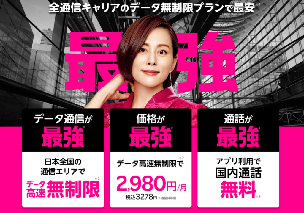 楽天モバイルは他の大手3社と比較しても非常にお得です。